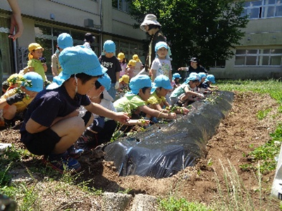 7月10日(木)、11日(金)、17日(木)には、5年生が町内の3つの園(1組は下市田保育園、2組は認定こども園ぱどま、3組は認定こども園高森あかり)にそれぞれ交流に行きました。