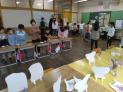 ある日は交流学級を招待してお店を開きました。その日はとてもにぎやかでお店番も大忙しでしたが、まめまめしく働く姿が見られました。