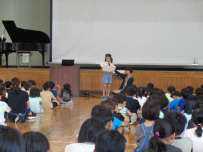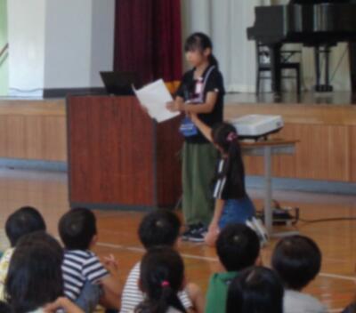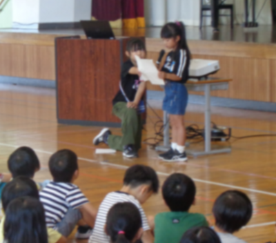 (4年生女子)私は生き物委員会に入っています。花壇にあるきれいなお花と下市田保育園の育てているサツマイモが枯れてしまうとかわいそうだなと思って、当番の日にじょうろでお水をたくさんあげています。草取りも頑張ってやりました。(中略)私たちのクラスは、3年生の時からお年寄りのみなさんに元気を届ける活動をしています。(中略)私が一番楽しかったのは、「誰にだってお誕生日」を歌って、お年寄りのみなさんに手を挙げてもらえたことです。お年寄りの皆さんに「いのちの歌」を歌っていたら何人もの人が泣きながら聞いてくれているのを見て、私はとっても嬉しかったです。
