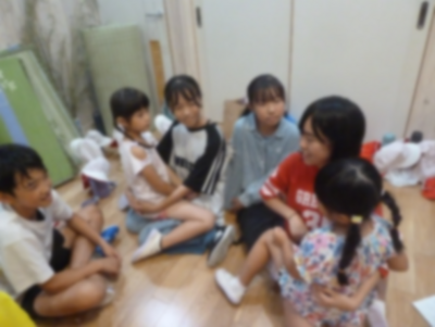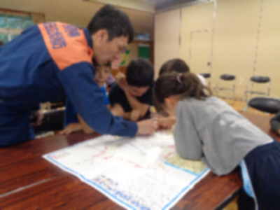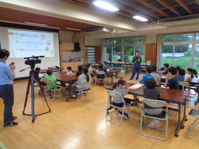 災害が起きたときの避難所生活を体験しながら、防災について学習しました。防災学習では飯田広域消防署員2名を講師としてお迎えし、ハザードマップを使用した防災DIGを行い、実際の被災地の様子等のお話をお聞きしました。また、非常食としてマジックライス、缶詰、豚汁を食べ、高森町から借用した防災簡易ベッドで寝る体験も行いました。参加した子どもたちにとっては大変貴重な体験になったことと思います。