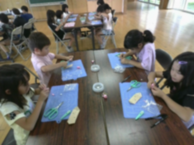 9月11日(木)、駒ケ根シルクミュージアムの方に来ていただき、蚕の繭を使ってストラップづくりをしました。1学期に自分たちもお世話をし、繭をつくるところを見ていたのですが、しっかりとかたいのにとても軽くて優しい手触りの繭を手にすると、幼虫の一匹一匹がつくったものなんだと改めて自然の不思議を感じました。