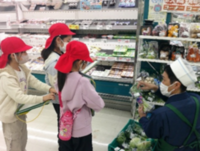 10月最終週には、学級ごとに高森町のキラヤの見学をさせていただきました。店内を見て回るグループ、店長さんにお店の裏側を案内してもらうグループの二手に分かれ、交互に見学をしました。さらに、「今、どんなお仕事をしているのですか。」「どうして、キラヤに買い物に来たのですか。」など、売り場にいる店員さんやお客さんに自分たちから積極的に質問をする姿がありました。
