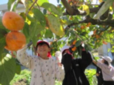 10月28日(火)は柿取りをしました。校内に10本ある柿の木から、学年全体で約6ケースの柿を収穫することができました。