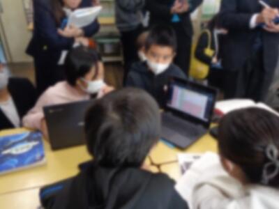 11月6日(木)、「聴き合う」学びを基盤に、すべての子どもが安心して学び、子どもと教師が共に成長していく授業づくりを目指して、ICT(ロイロノート)を活用した授業を公開しました。県下各地から31名の先生方に授業を参観していただくとともに、本校の研究の方向や授業の実際について多くのご示唆をいただきました。