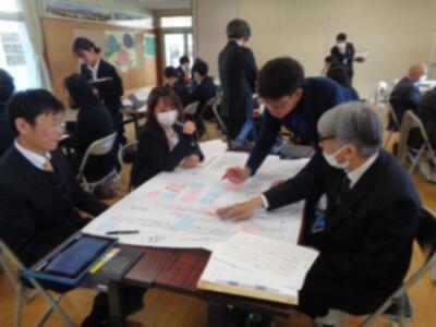 授業研究会では、「個の学びがどうだったのか」について、子どもの具体の姿、ICTの有効性、教師の役割の視点から付箋を用いて協議し、最後にグループごとに「私たちが考える授業改善のポイント」についてまとめていただきました。