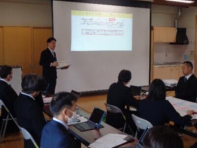 そのような中、10月10日(金)、本校を会場として、小学校、中学校の先生方、教育委員会の皆さんが、「子ども同士が関わる時間」や「子どもにゆだねる時間」を確保した授業を参観し、目の前の子どもは、具体的に誰とどのようなかかわりをもち、どのように考えを広げたり深めたりしながら授業のねらいに迫っていったかについて語り合いました。