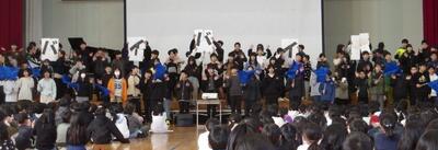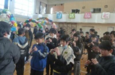 1~5年生は6年生に向けて心を込めて発表しました。どの学年からも感謝の気持ちや励ましの言葉があり、6年生はみんな、とても嬉しかったと思います。6年生は「Soranji」の曲に乗せて、全校に感謝の気持ちを伝えました。そして校長先生からは6年生にくす玉で「ありがとう」が贈られました。たくさんの「ありがとう」があふれる温かい会でした。